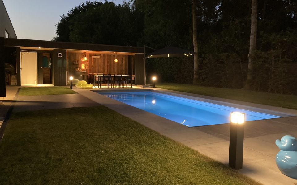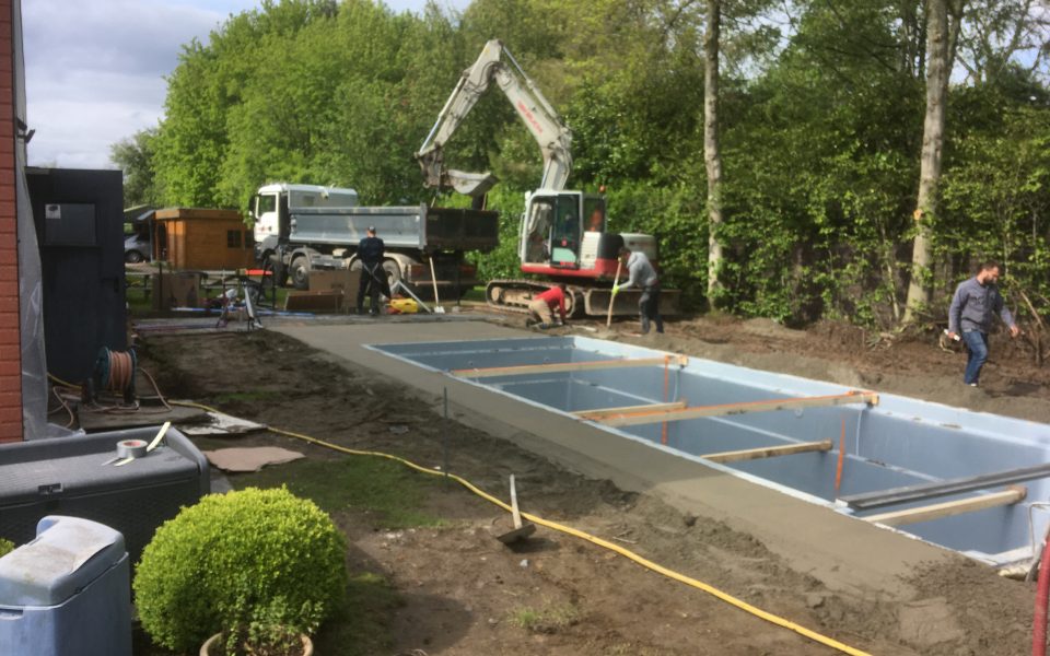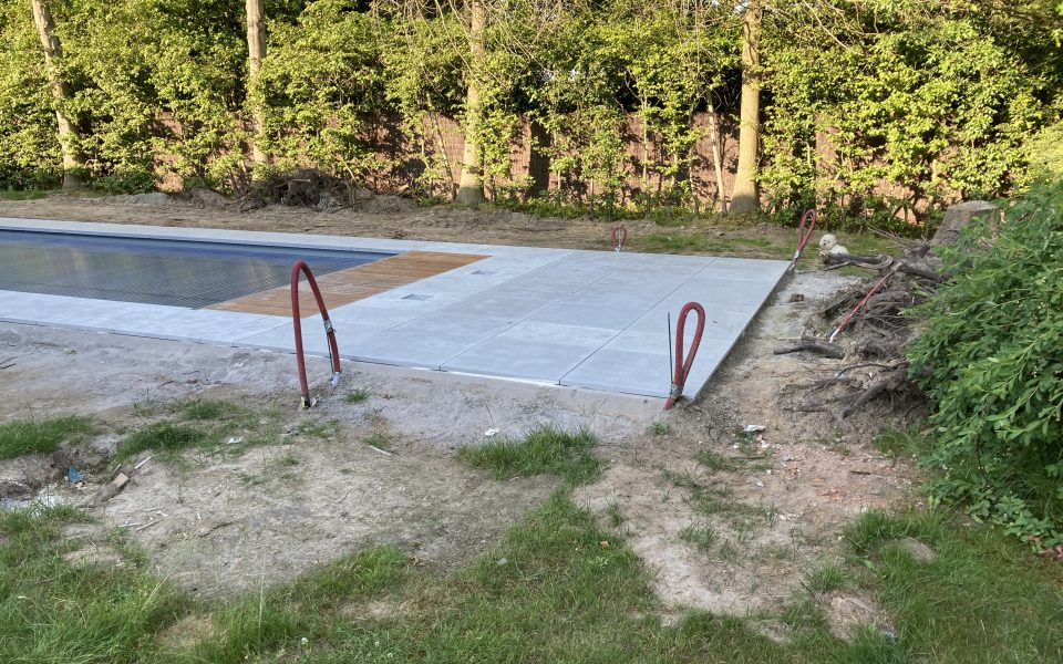 De aanleg van dit zwembad is gerealiseerd door MV Building in samenwerking met een externe firma.