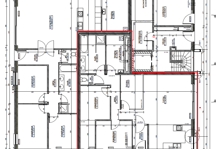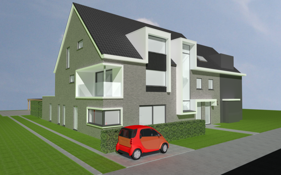 De autostaanplaats achteraan de tuin is inbegrepen in de huurprijs. Er is een dubbel elektrisch oplaadpunt voorzien vooraan het gebouw.